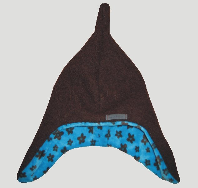 Fræk brun alfehue i dejlig varm uld. Huen er foret med blomstret velour.