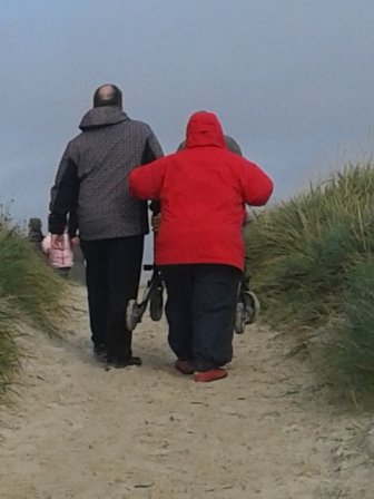 Da vi gik hjem havde min svigermor svært ved og gå med rolatoren i sandet, så sej som hun er, tog hun rolatoren "på nakken" også gik hun. Det er nu en svigermor med slag i jeg har fået mig.