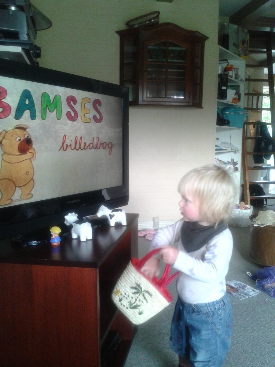 Efter vi kom hjem fra stranden og havde spist en gang middagsmad, ventede vi på kusine Mette og hendes drenge skulle komme... Da de kom Bamme "Bamses Billedbog"16-10-2012 21:49  Det er jo ferie, så hvorfor skal et af de første ord fra min datter ikke være Bamme...Hun er helt pjattet med Bamses Billedbog og den har vi set mange gange, på få dage, men men ferie det er jo, også må vi på afvænning når vi kommer hjem igen.