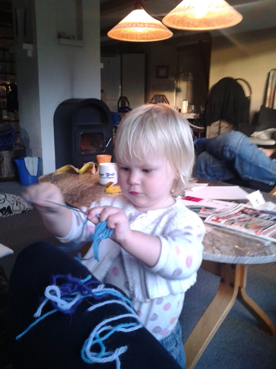 Efter at Alma fik sig en middagslur, legede hun med garnrester og min kære datter skal nu nok blive kreativ som sin mor. Garnresterne har hun leget med det meste af dagen ;-)
