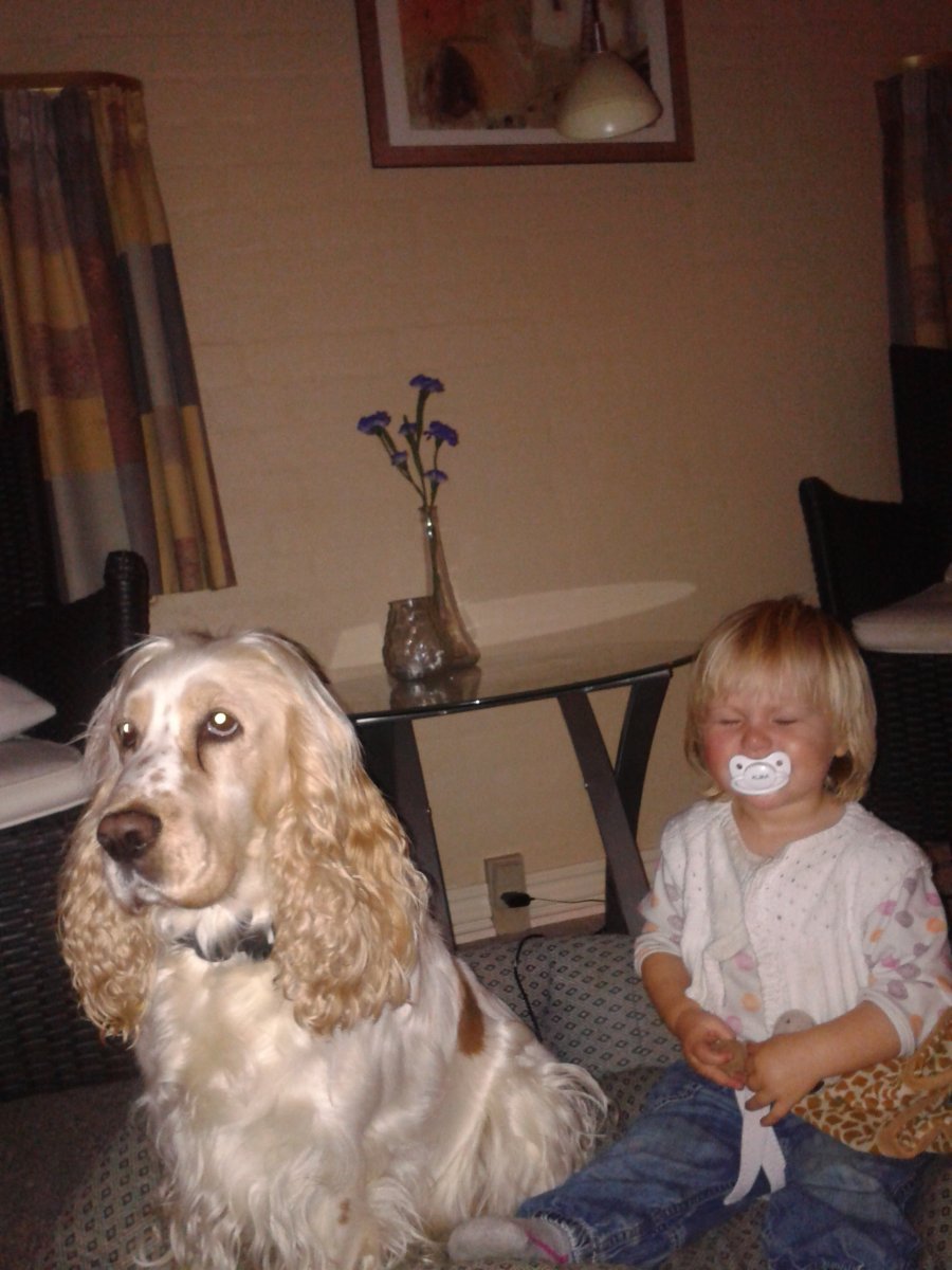 Og hygge med Bertha, vores hund, elsker Alma også...Dog stikker Bertha til de fleste tider aft efter og have fåe et kram....Har indtil nu været for langsom til og få taget et rigtig kramme billed af dem.