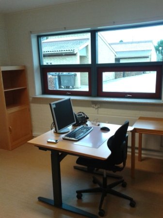 Så vi er så heldige at vi har fået eget kontor, hvor vi har valgt at der skal være arbejdsstationer for vores kollegaer, så de også kan få arbejdsro, når de har behov for det.
