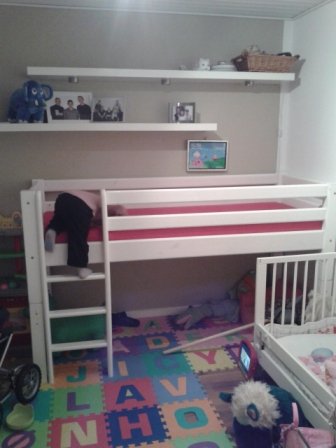 Alma er dog ikke stort nok til og sove i den endnu, men men, hun fare op og ned af stiger og løber rundt.