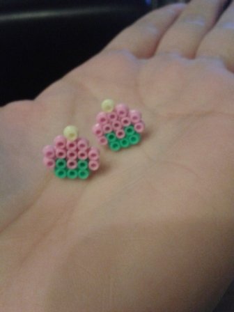 Maj-Britt havde den sødeste lille gave med til mig. Nogle små øreringe med cup cases, lavet af de små Hama perler. Så søde og stort set alle mine Kollegaer kommenterede dem, Da jeg kom på job dagen efter.