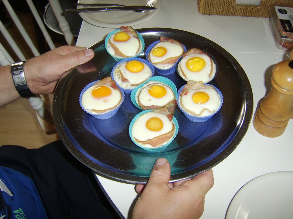 Lørdag morgen stod vi op til et veldækket morgenbord og til disse helt fantastiske æg og bacon muffins. De var så dekorative og de smagte super ;-)