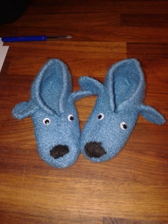Vi er lige hjemvend fra barselsbesøg. Min veninde fik for 14 dage siden den skønneste lækkermås af en lille dreng. Han er bare så kær og en lille hjemmelavet ting skulle han jo have, så har filtet disse søde små sutsko til ham.