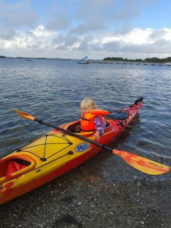 Laura og Lærke nød også en sejletur i kajakken. Mor Line hjalp lidt til.