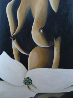 Kvinde med hvid blomst