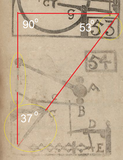 So this must be one of several things Orffyreus means by pointing to 5 and 3. The 3-4-5 triangle and the angle of 53 degrees.