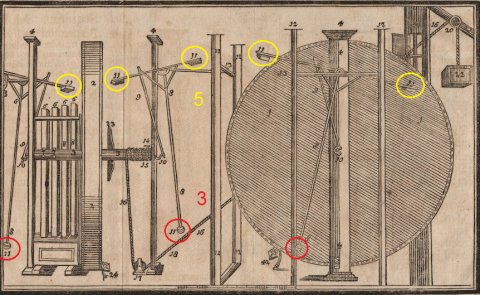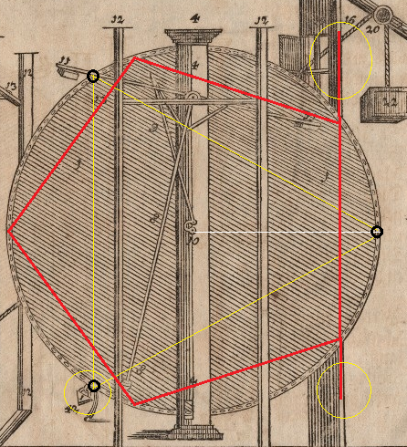 Looking closer at the Merseburg drawing we will find te same consistencies. If we count the weights in the pendulum weights in the picture, we will find 5 square weights and 3 circular pendulum weights. Again we have 5 and 3 (totally 8).