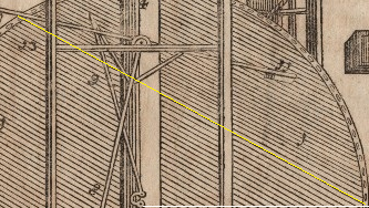 Looking closer at the drawing and the wheel itself, we can see that he has drawn tiny lines that has about a 30 degrees angle.