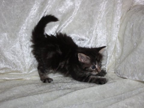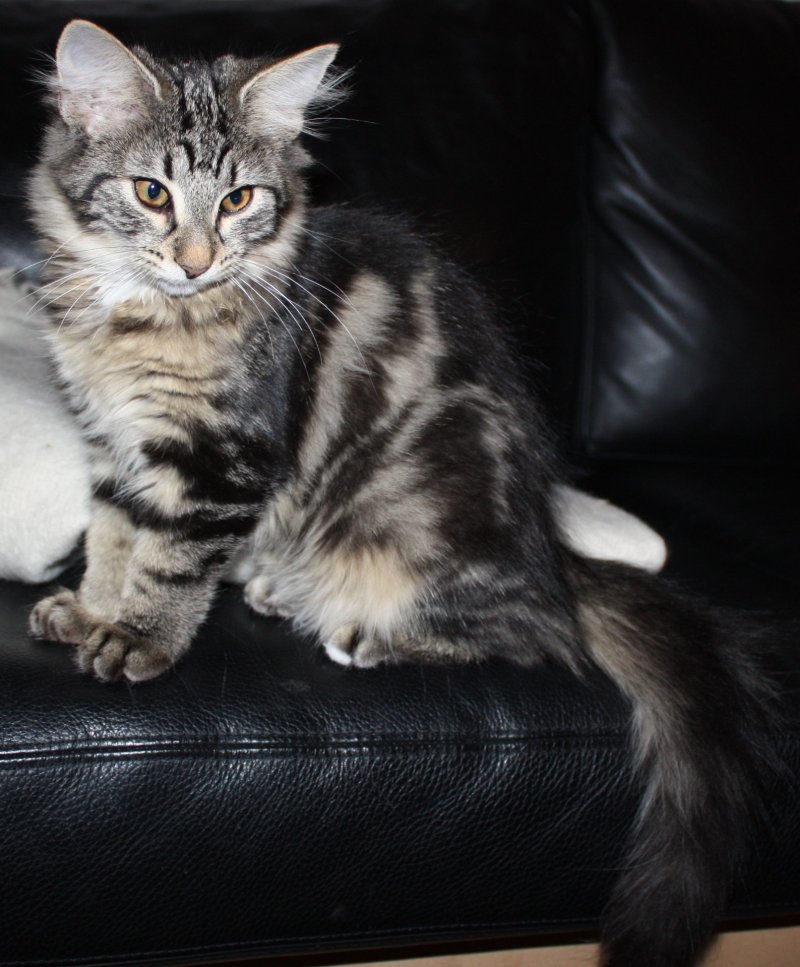 Hun har en lækker pelskvalitet med et meget smukt blotchedtabby mønster i klare og smukke farver.