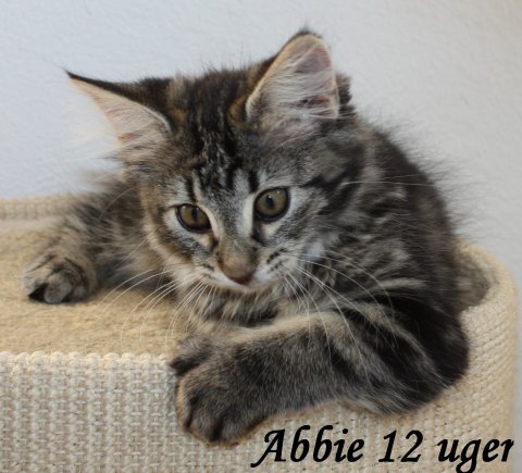Abbie er en rigtig legesyg charmetrold. Hun er meget kontaktsøgende og elsker at putte ved os.