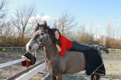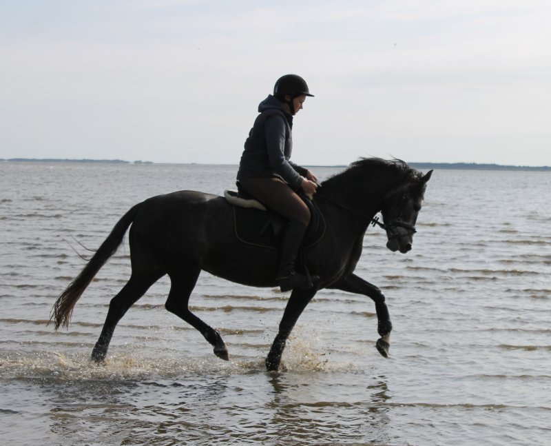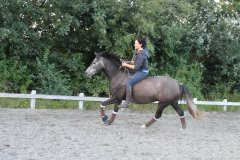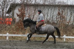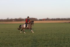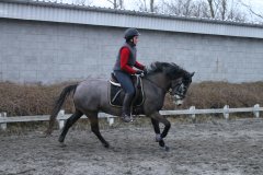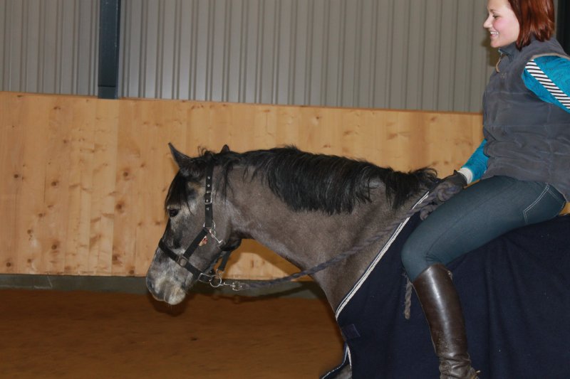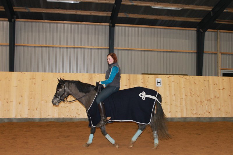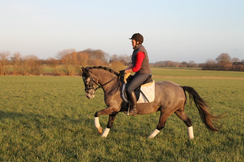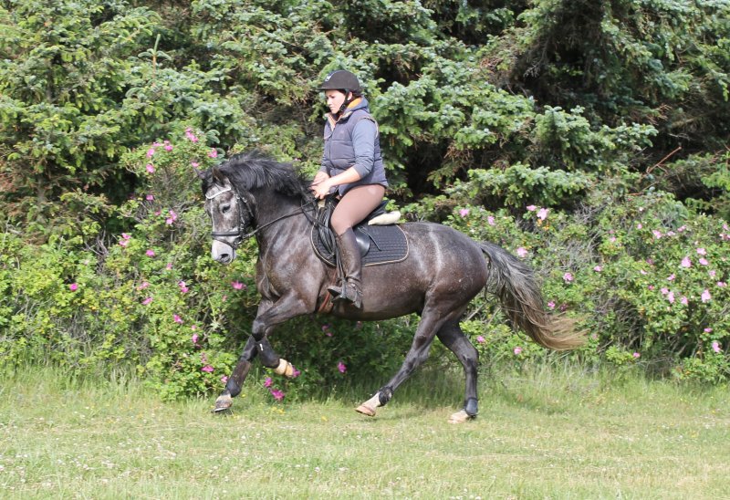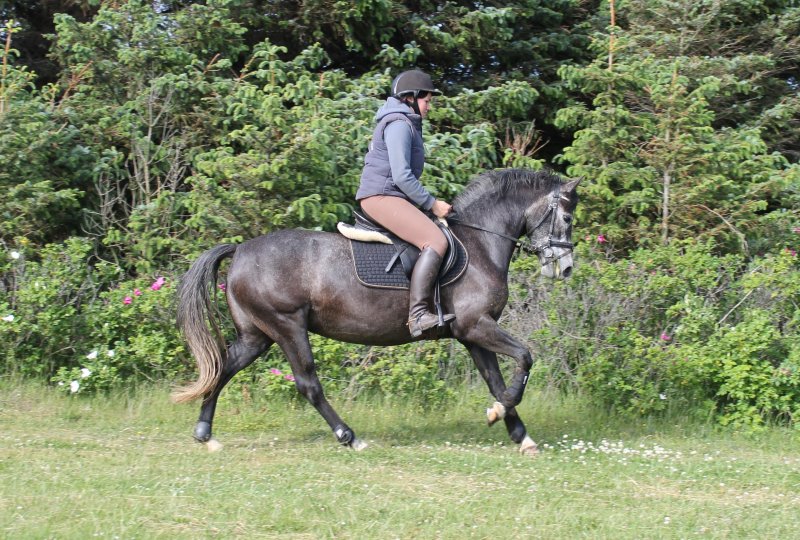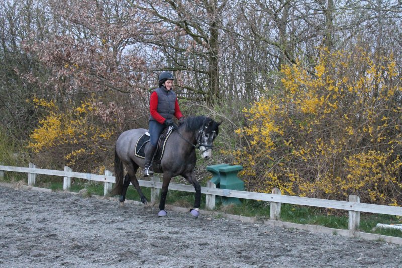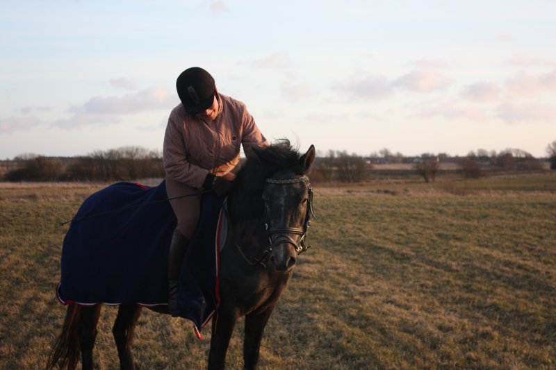 Hun blev redet til som 3 års, eller redet til er måske et stort ord , for faktisk satte vi os bare op, uden longe eller noget, på dag 1 red vi rundt i skridt/trav og på dag 2 skridt/trav/galop , fuldstændig som om hun aldrig havde lavet andet. Dernæst ifolede vi hende m. TT Prince perfect , hvilket lykkedes og i 2011 fik hun det yndigste hoppeføl :-)