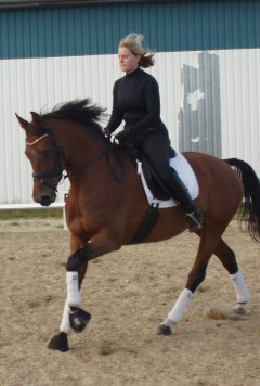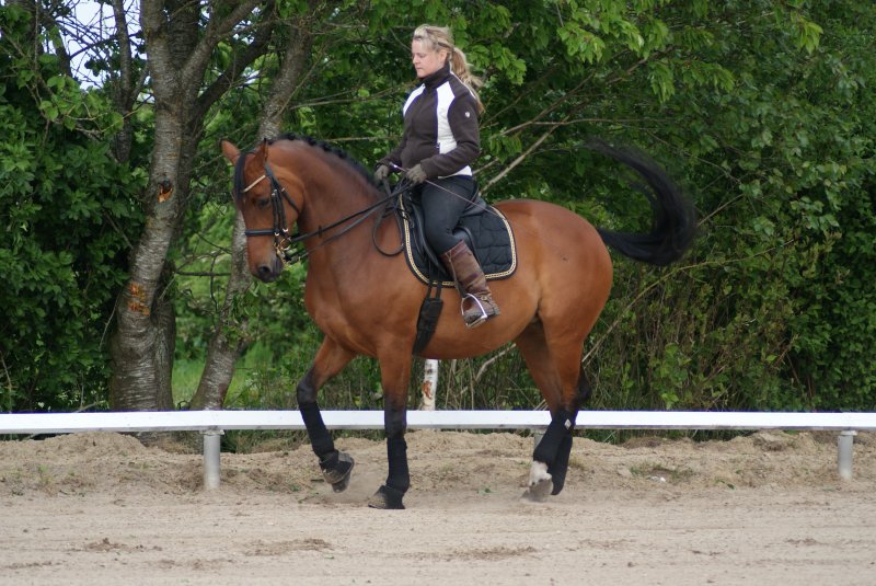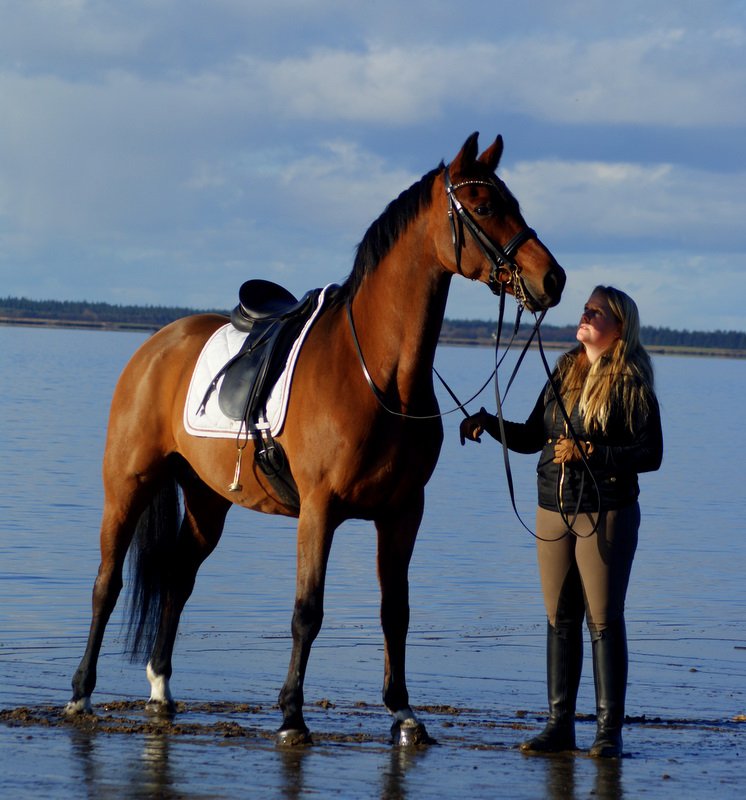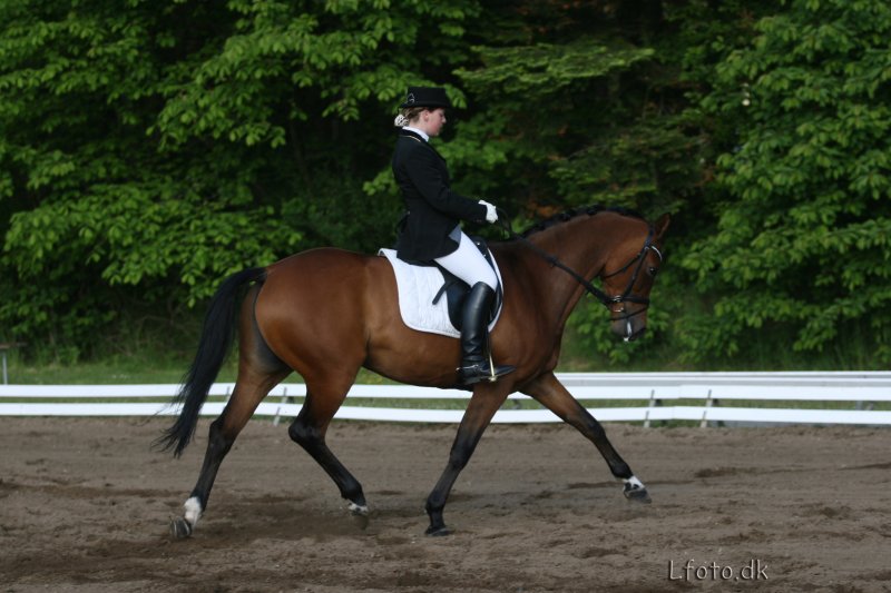 Hun er en hoppe og det fornægter sig ikke , hun har sine egne meninger om ting men arbejder med utrolig iver og er altid en glad og positiv hest at arbejde med. Hun er tilmed en smart , velfungerende og øvelsesstærk hest der kan div øvelser f.eks. piaff , traverser , serier mv. ...