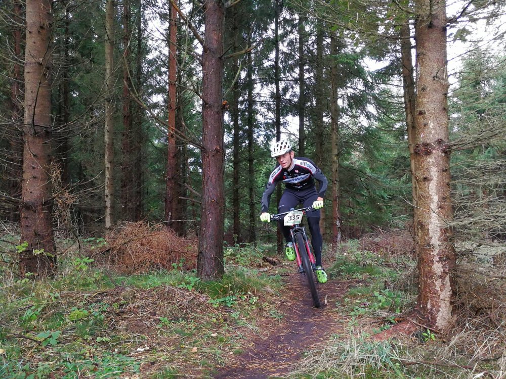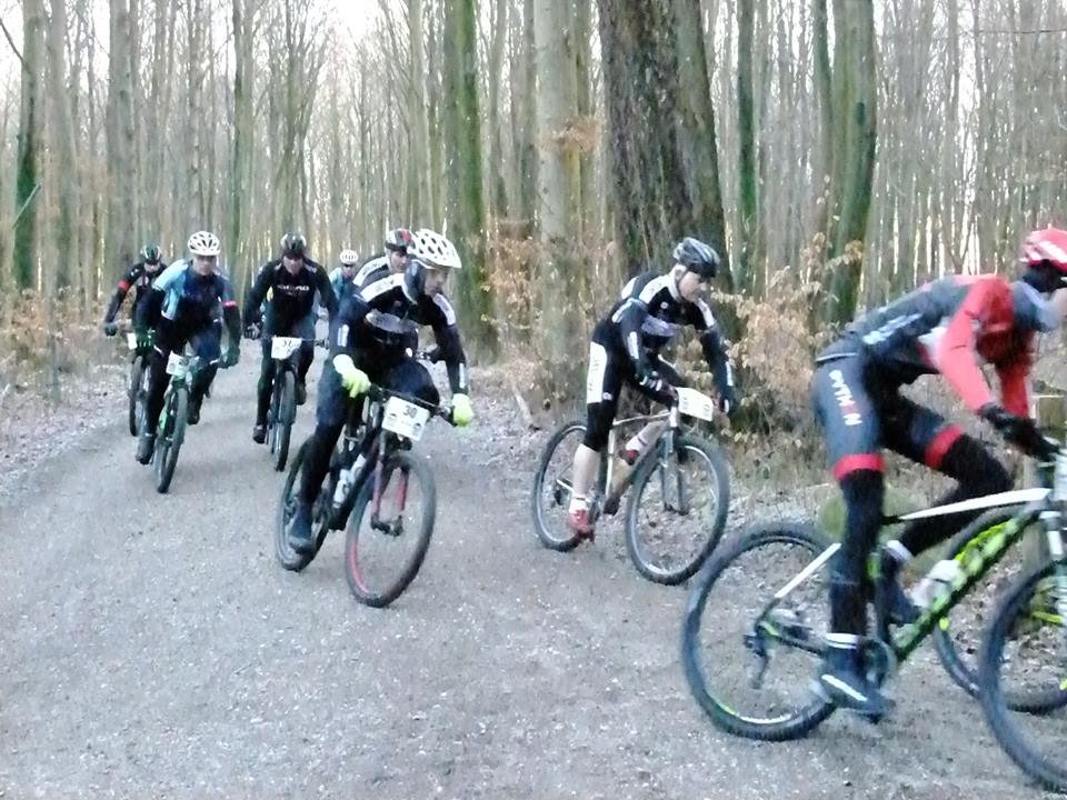 Det var virkeligt rart at slippe for mudder, og der var rigtig godt fart i cyklen på den frosene jord. Mange tekniske stykker hvor man kunne hente fart, hvis man brugte sin teknik rigtig. Efter et par omgange kom der ”sort is” og det Odlo-Deuter provins MTB16-10-2017