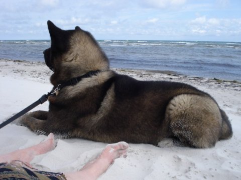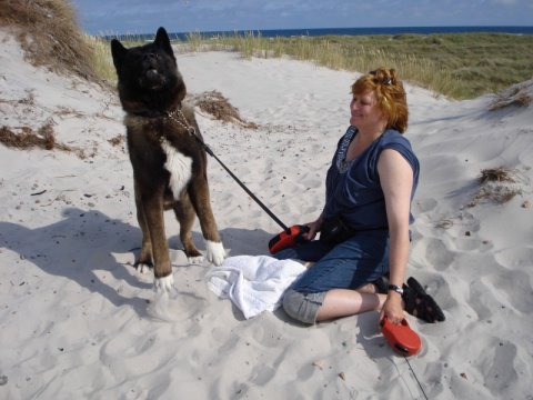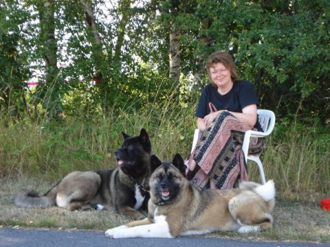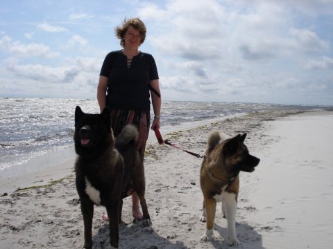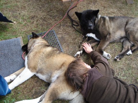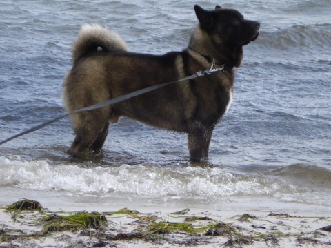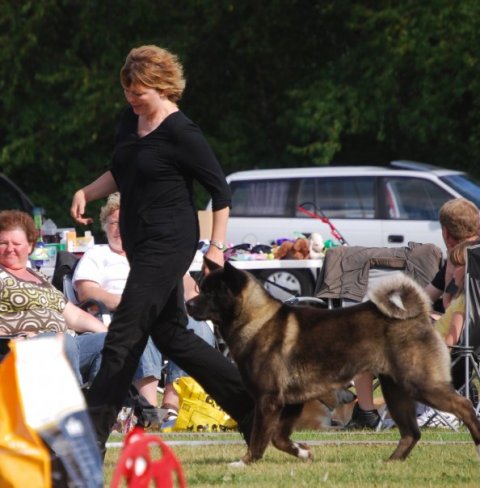 Det var fantastisk at se Score (se ham ovenfor) - han var præcis så pragtfuld som jeg forventede, en rigtig bamsa af en Amerikansk Akita. Der er mange forskellige typer inden for racen og han er i mine øjne præcis som racen skal se ud, men det er jo helt klart en smags sag. Tæven var også skøn og mindede utroligt meget om Toya. Og begge forældre havde et virkelig elskeligt temperament, som jeg jo synes er meget vigtigt.