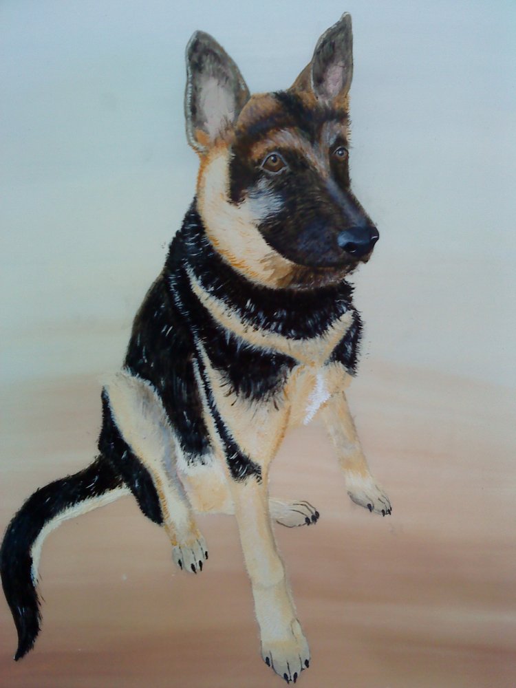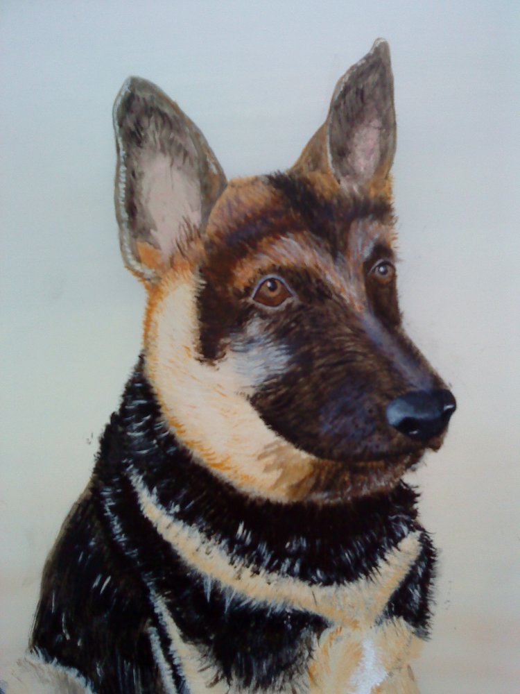 Første hundebilled jeg malede. Modellen af vores egen schæfer, Kenzo.