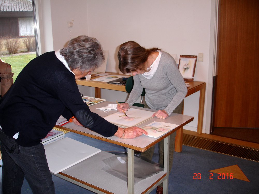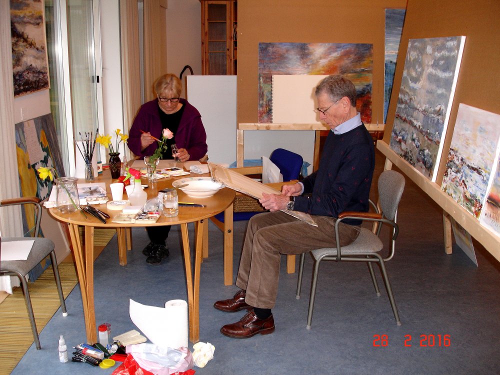 Der blev afholdt akvarel-workshop i weekenden den 27.-28. februar begge dage kl.10-16 på Atelier Hannebjerg. Ane Grete Aagaard øste af sit livs erfaring, underviste i mange forskellige teknikker og viste smarte metoder. Alle deltagere fik prøvet at male landskab, blomst, frugt, vase, perspektiv, naturalistisk, abstrakt, vådt og tørt samt farvelære og anbetalinger til køb af papir, pensler, farver m.m.