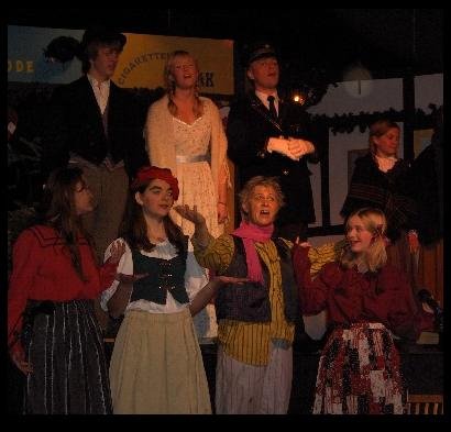 I julen 2005 opførte vi "Røverjul" på Skovvangskolen i Allerød. En lille stationsby kort før jul. Folk køber ind og juletræssælgeren råber op om gode tilbud. Men på byens fabrik hvor mange af byens borgere er ansat har man svært ved at få økonomien i orden. Det sidste håb kommer til byen når fabrikantens søn vender hjem fra en vellykket salgstur. Men så snart penge og ordrer ligger i pengeskabet bryder byens røvere ind på fabrikken og stjæler det hele, både penge, ordrer og juletræssælgerens datter!