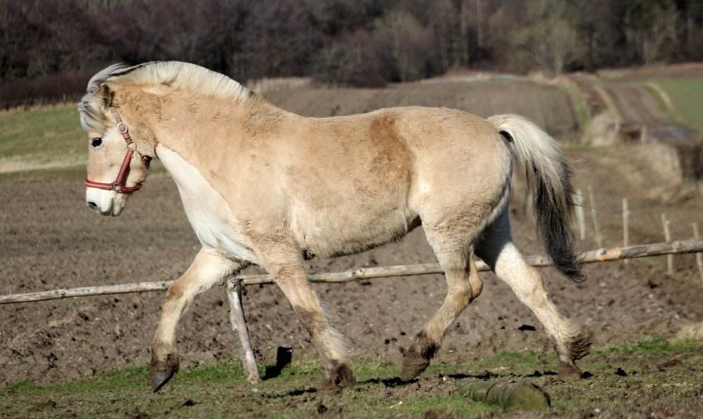 Freja traver på folden.