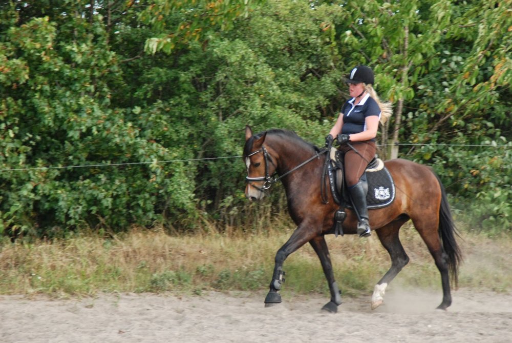 Jasmin og jeg gør stadig fremskridt. Vi rider stadig ved Vivian og det er vi godt tilfredse med. Vi har næsten styr på schenkelvigningerne og versader. Jasmin er meget arbejdsvillig og det gør det kun nemmere i træningen. Vi er også begyndt at snuse lidt til springningen, hvilket hun tager i stiv arm. Billeder vil snart komme:)