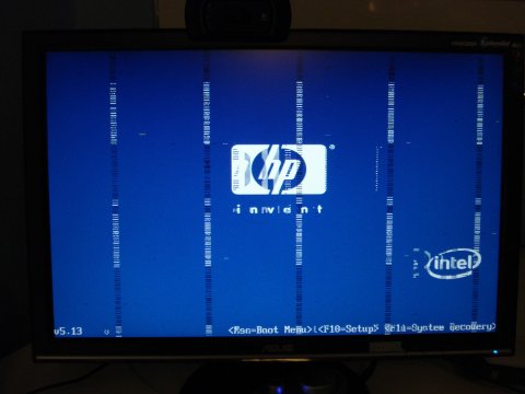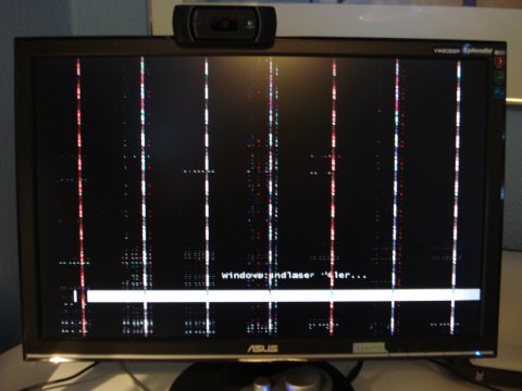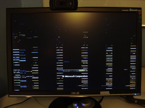 Opstartsbillede, med en masse striber.