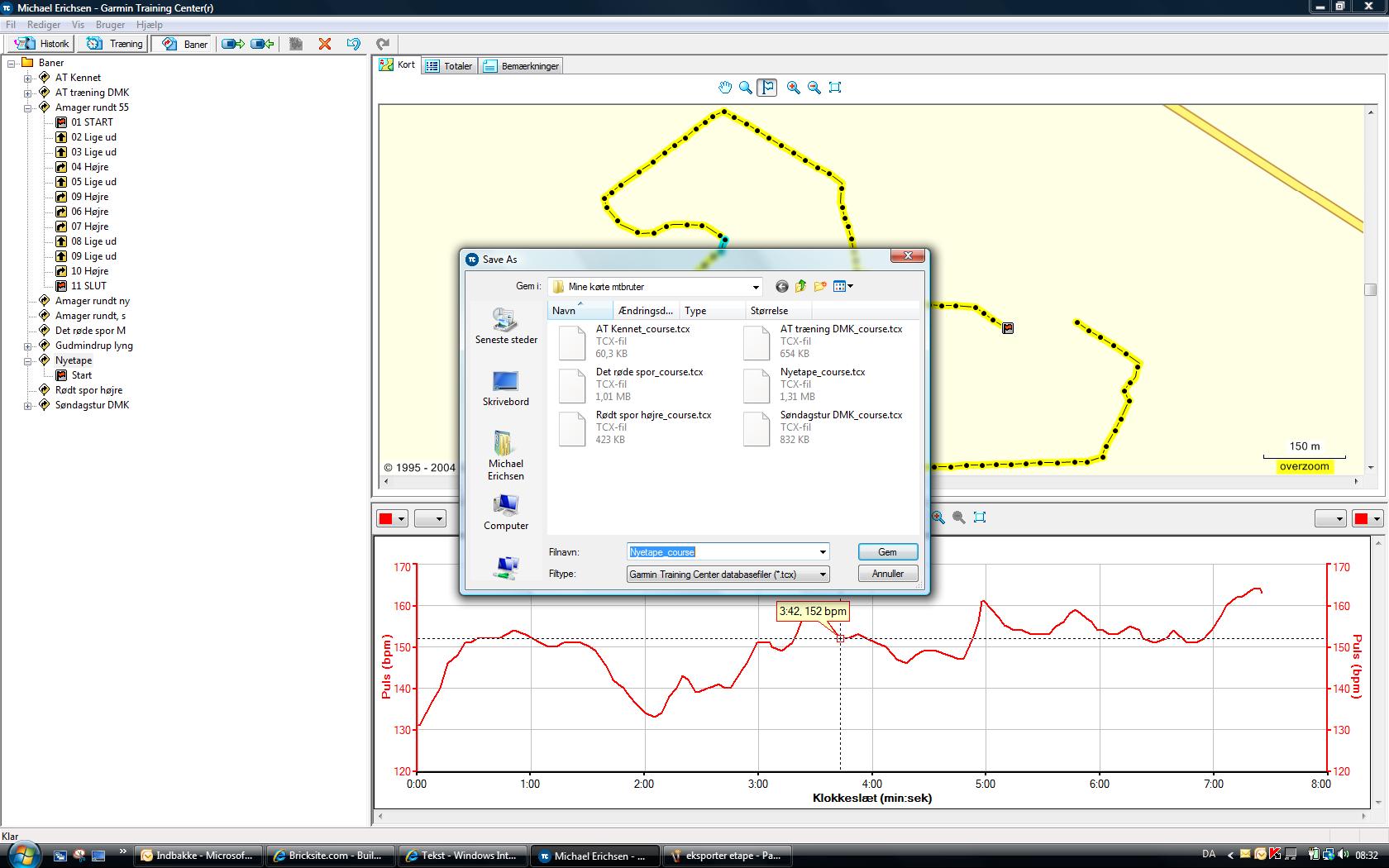 Når du er kommet hjem fra træning og har gemt din historik fra gps'en over i Garmins Training Center, har du mulighed for at lave en kørt tur om til en etape.