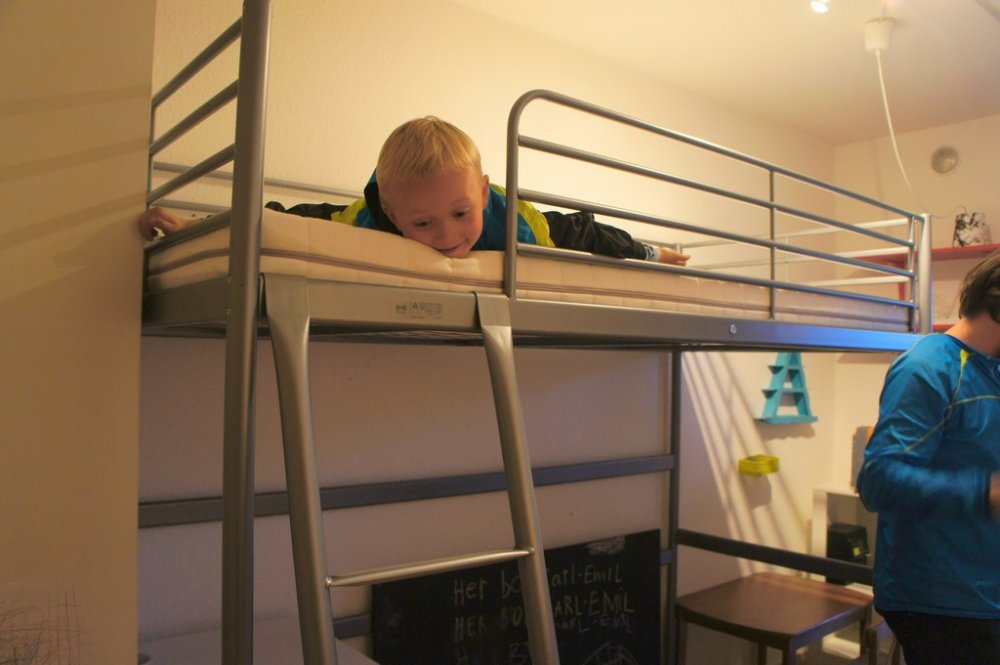Alt vort jordiske gods stablet sammen og i kasser |  Det behøver i grunden ikke så meget plads |  Ankommet til tanders, og legepladsen skal prøves |