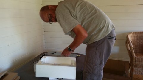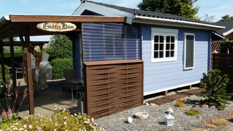 Forhandling med Gudrun (Gudde) om køb af hendes have  Bisoner der går på engen bag haverne  Det første vi gjorde var, at male huset indvendigt  Køkkenet i det lille hus, som nu er indrettet til soverum  Besøg i haven  Der skal selvfølgelig være en flagstang  Godt med en hjælper til at sætte flaget