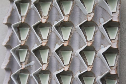 Trekanter, stentøj og porcelæn, 26x26x6 cm, 2013
