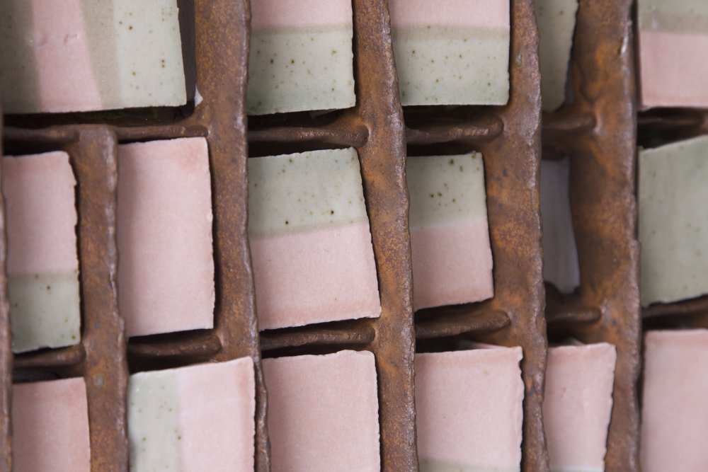 Opdelinger, stentøj og porcelæn,35x12x5cm, 2013  Opdelinger, 55x14x7 cm, stentøj og porcelæn, 2013  Opdelinger, stentøj og porcelæn, 53x18x7 cm, 2013  Netværk, stentøj og porcelæn, 33x33x6 cm, 2013  Netværk, stentøj og porcelæn, 50x40x6 cm, 2013  Netværk, stentøj og porcelæn, 40x36x6 cm, 2013  Netværk, stentøj og porcelæn, 35x21x5,5 cm, 2013  Kvadrater, 18x20x7 cm, stentøj og porcelæn, 2013  Kvadrater, stentøj og porcelæn, 22x21x11 cm, 2013  Trekanter, stentøj og porcelæn, 26x26x6 cm, 2013