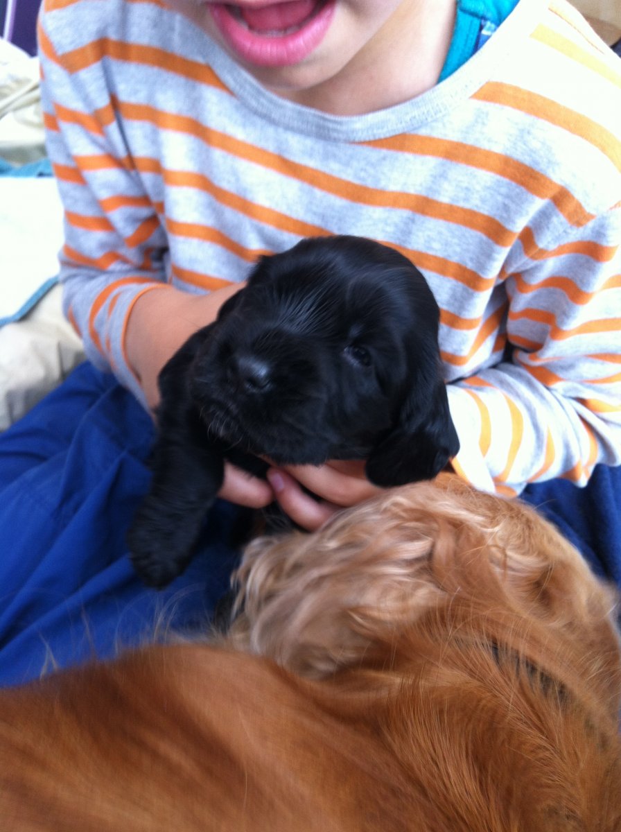 Anton en uge gammel. Det var ham der kom først ud, og han er en stor og dejlig krabat.  Atila fire dage gammel, den anden sorte han, 4 dage gammel.  Atila en uge gammel.  Atle er rød. Her er han fire dage gammel.  Atle en uge gammel. Selvom han kom sidst ud, er han vokset sig stor og stærk.  Lucca, en af pigerne, er her fire dage gammel.  Lucca en uge gammel.  Molly fire dage gammel. Hun er sort med lidt hvidt på brystet.