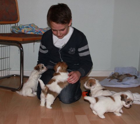 I går prøvede de at komme ud i sneen, bare en lille bitte tur. Der er jo noget koldt, men det var spændende.