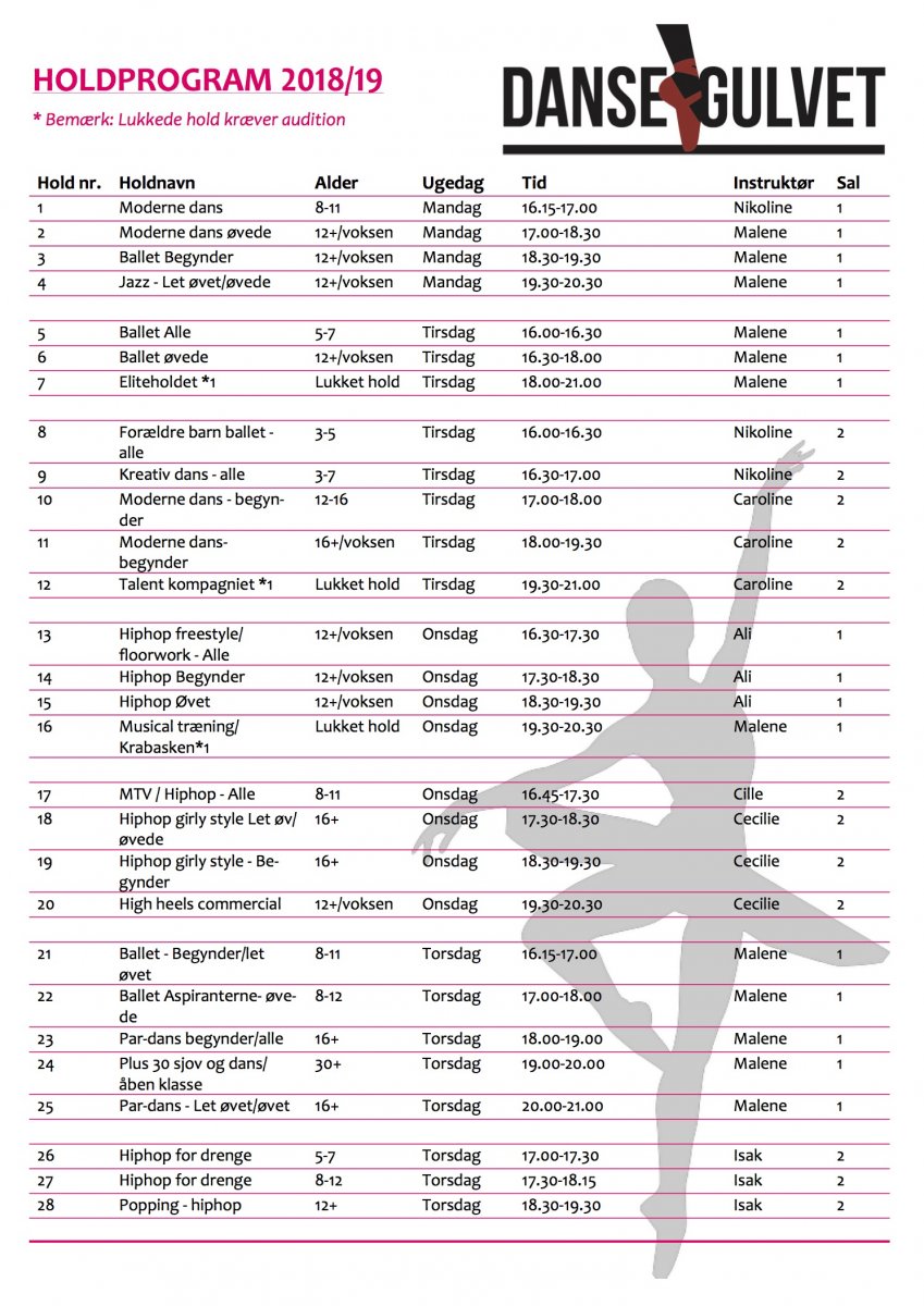 Programmet gælder pr 20. august 2018. Tilmelding åben.