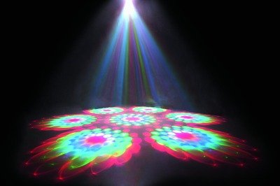 LED DMX lyseffekt enhed ´´Flower´´, skaber 7 cirkel mønster i flere forskellige farvekombinationer. Stor særlig linse for høj lysvirkning 3 primære farver (rød,grøn, blå) plus hvid 392 super lyse lysdioder for højeste lysvirkning (rød: 140, grøn: 105, blå: 84, hvid: 63) DMX kontrolfunktion for 9 kanaler: (kanal 1: auto / lyd, kanal 2: hastighed, kanal 3-9: mønstre af de enkelte cirkler) Musik-styres via integreret mikrofon, justerbar følsomhed Master / slave mode med automatisk kørsel af programmer Processor-kontrollerede farveskift Lang levetid med et lavt strømforbrug Blæserløs kølekoncept Metalhus med bevægelige monteringsbeslag og nitter bolt til fastgørelse en sikkerheds reb Strømforsyning: 230V ~ / 50Hz/40VA Mål: 28x28x31cm Vægt: 5,5 kg