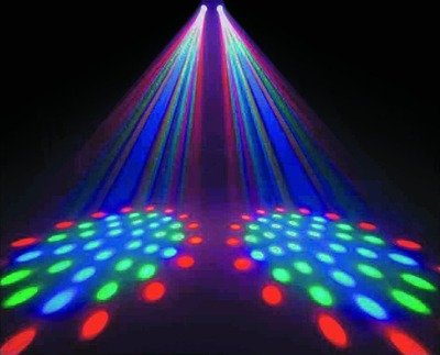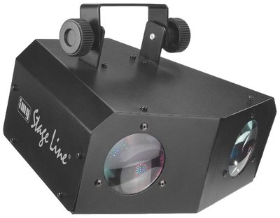 Light effect unit "Double Flower", with LED technology. 2 x 46 super bright LEDs (red: 16, green: 15, blue: 15) Processor-controlled colour and pattern effects Music-controlled via integrated microphone Long life with low power consumption Fanless cooling concept Metal housing With movable mounting bracket and mains connection cable Power supply: 230V˜/50Hz/20VA Dimensions: 28x16x25cm Weight: 2.9kg