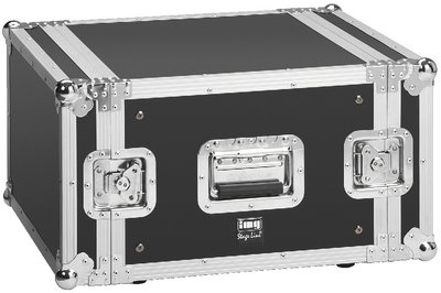 MR-406 Flightcase 6USerie af Flight Cases Multilayer multiplex træ, sort, plast-lamineret Aluminium profilkanter Forkromet bold beskyttelse hjørner, forstærkende vinkler og stik Alu-skinner med M6 møtrikker til variabel montering af enheder, der ikke glider af møtrikkerne, og derfor nem montering