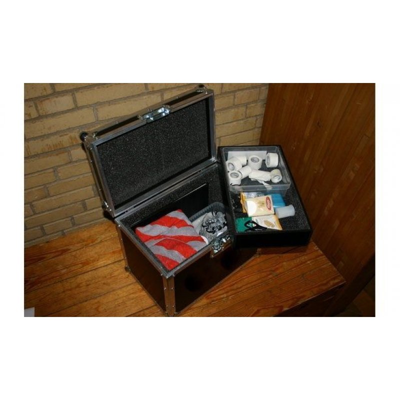 Flightcase i målene:B: 40 cm.H: 25 cm.D: 20 cm.Kan benyttes til mange formål, på billederne vises brug til håndbold.I bakken er der 5 mm. skum overalt. I bunden af kassen, står bakken på 20 mm. skum i siderne.