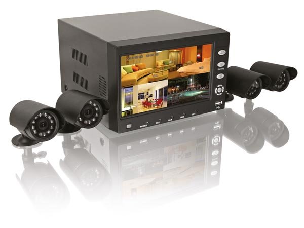 Dette gør-det-selv overvågningssystem er den perfekte løsning til overvågning af bolig og privat ejendom. Sættet indeholder 4 vandtætte CMOS farvekameraer med automatisk infrarød natlys, 4 × 18m kombikabel med stik for tilslutning af kameraer samt en 4 kanals harddiskopdager med indbygget LCD fladskærm. Den digitale harddiskoptager gemmer i H.264 CIF format på en 500GB SATA harddisk (medfølger). Vælg selv om den skal optage ved bevægelsesdetektion, manuelt eller tidsstyret. Harddiskoptageren har desuden USB port for nem backup samt LAN port for netværksbackup og fjernstyring via netværk/internet.