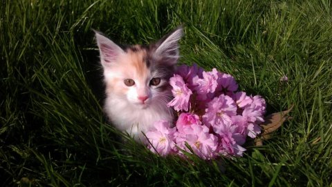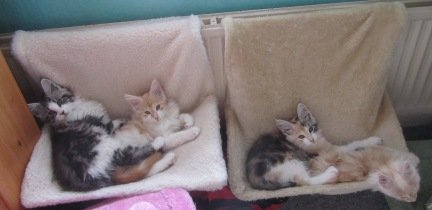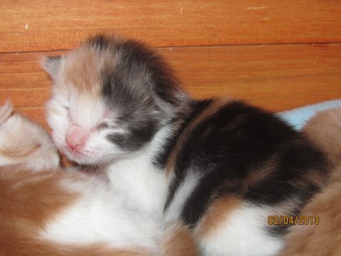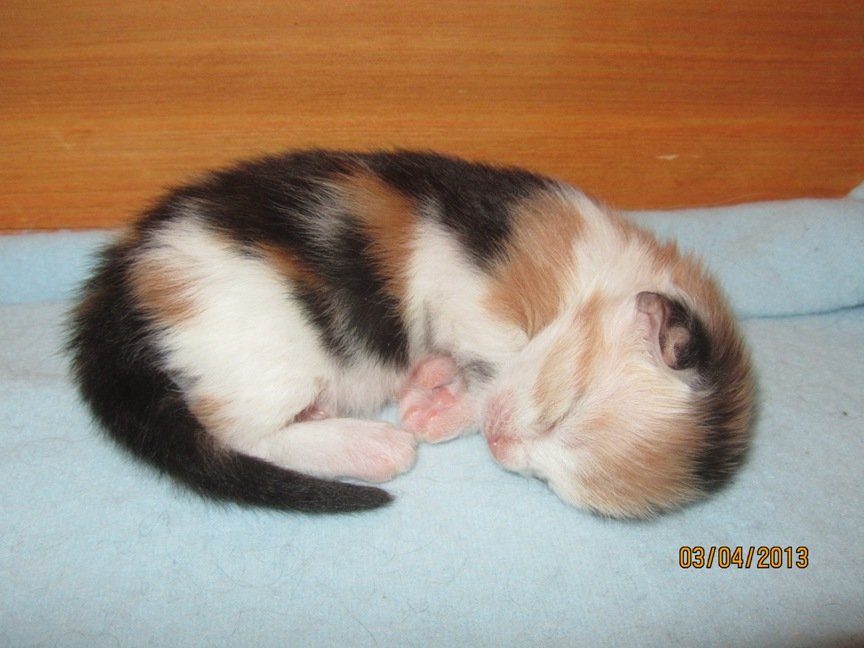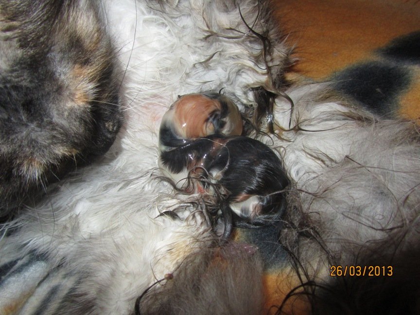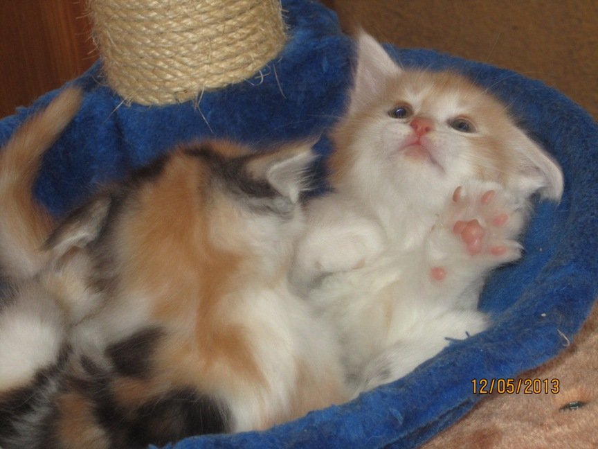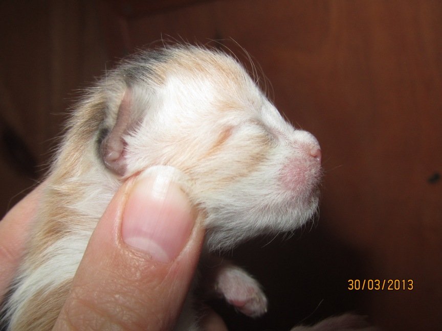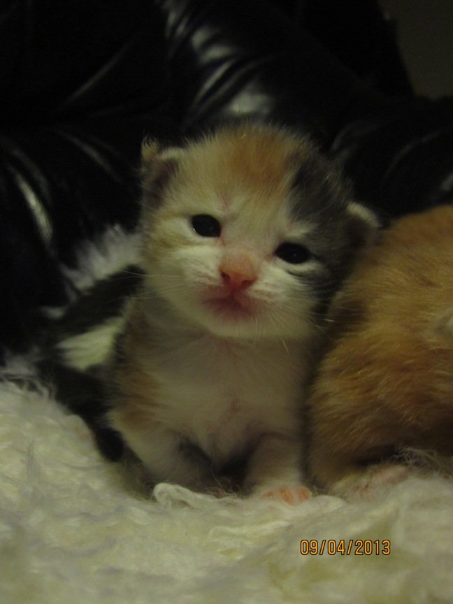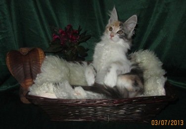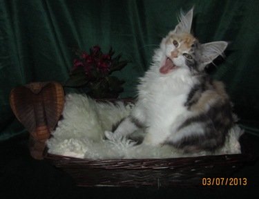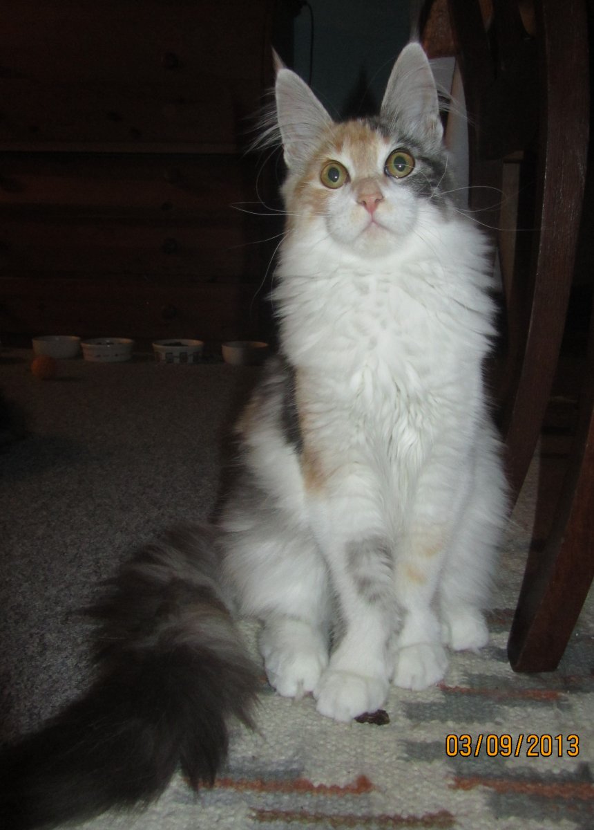 Bicolour sort tortie sølv blotched tabby med hvid.
