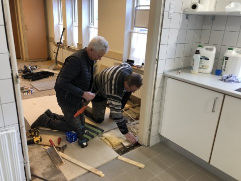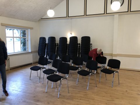 Den lille sal har fået nyt gulv og er ligeledes frisket op med nymalede vægge.