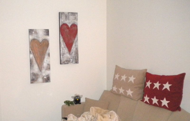 To hjertebilder som matcher de kule putene og sofaen godt! :-) |