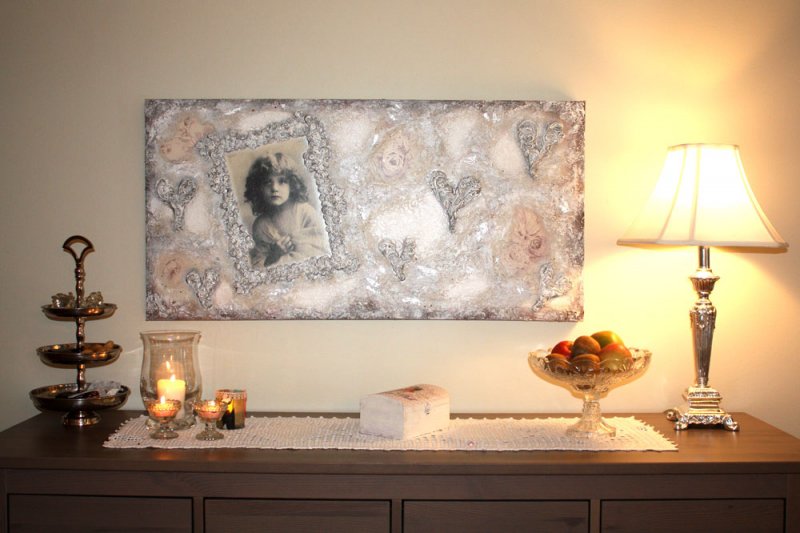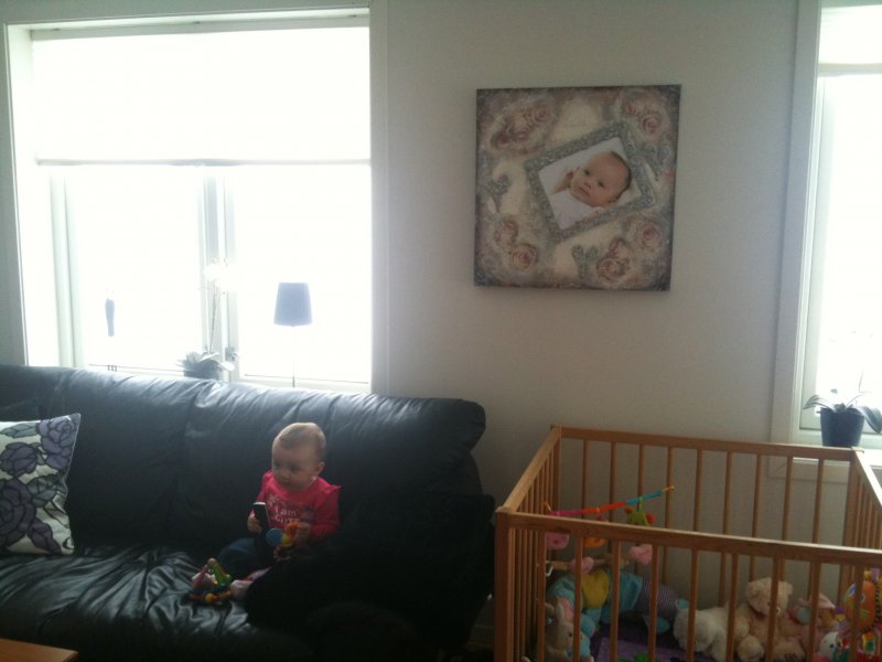 Maleriet på veggen er malt på bestilling, med foto av [...]datteren montert på lerretet. Dette er en variant av de personlige maleriene jeg lager :-)Les mer..↑ |  |