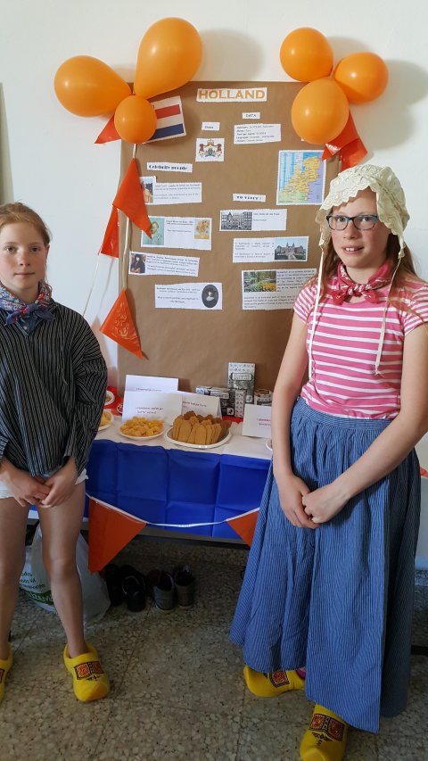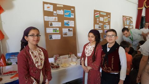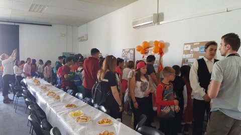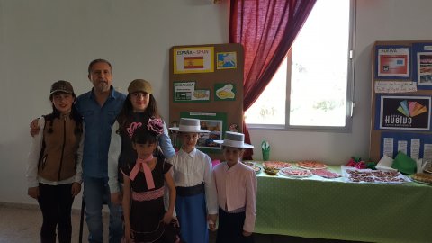 During the meeting in Spain we created different stands with typical products from every country. There were some kids from all countries wearing typical clothes and we put into practice our dictionary. Children practiced some expressions in all languages involved in the project in our stands