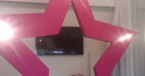 Vi byggede en Bratz catwalk med en stor pink stjerne med lys i, som indgangsportal.