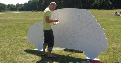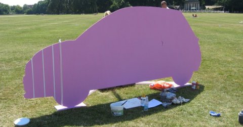 Da Fiat lancerede deres nye Fiat 500, lavede vi en masse træmodeller af bilen, som forskellige kunstnere udsmykkede ved en happening i Fælledparken i København.