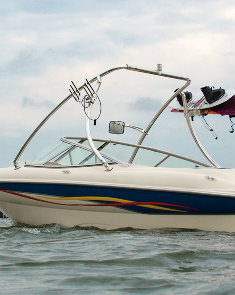 price and performance • Telescoping top section • 2" diameter tubing • Fits boat-decks from (at least) 76" / 193 cm to 108" / 274 cm in width