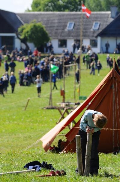 Drengene er taget med de blå spejdere på weekendlejr - Kallebylejren -som er opbygget omkring spejdercentret Kølhøjhus ved Astrup. Anledningen til lejren er, at Rold Skov Division markerer 40-året for etableringen af Kølhøjhus.