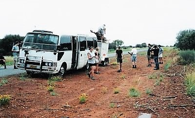 Nu havde vi 4 dage i The Red Centre. Jeg havde bestemt mig for en 3-dages tur ind til bl.a. Ayers Rock. Borgstrøms ville hellere leje en bil og køre selv - det var også helt OK. Vi aftalte bare at mødes fredag kl. 10.00 på vandrehjemmet, hvor vi skulle videre. Jeg boede på Melanka Backpackers på en 3-sengs værelse med en japaner og en amerikaner. Om dagen var jeg på sightseeing rundt i byen - bl.a. oppe på en udsigtspunkt, hvor der var god udsigt over byen. Ca. 27000 bor der i byen, som ligger ca 1500 km syd for Darwin midt ude i ørkenen. Byen har School of the Air og The Flying Doctors. Når man gik rundt i byen mødte man rigtig mange aboriginere - ikke så mærkelig da vi jo befinder os i deres land. Mange af dem så meget sølle og hærgede ud. Om aftenen spiste jeg pizza med min amerikanske værelseskammerat og ellers var jeg lige en tur i baren, hvor der var live-music. Fik lige en snak med en aussi guldmine-arbejder. Jeg havde booked en 3-dages med Northern Territory Adventure Tours. Det sku' nok blive spændende.